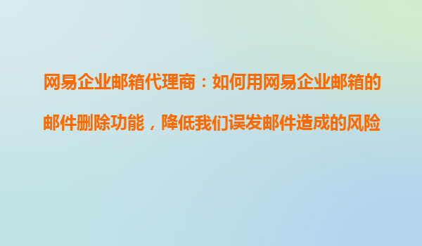 2025-10-23網(wǎng)易企業(yè)郵箱代理商:如何用網(wǎng)易企業(yè)郵箱的郵件刪除功能,降低誤發(fā)郵件風險? 一、誤發(fā)郵件的風險與網(wǎng)易企業(yè)郵箱的價值 在企業(yè)日常溝通中,誤發(fā)郵件可能導致商業(yè)機密泄露、客戶信任感下降甚至法律糾紛...