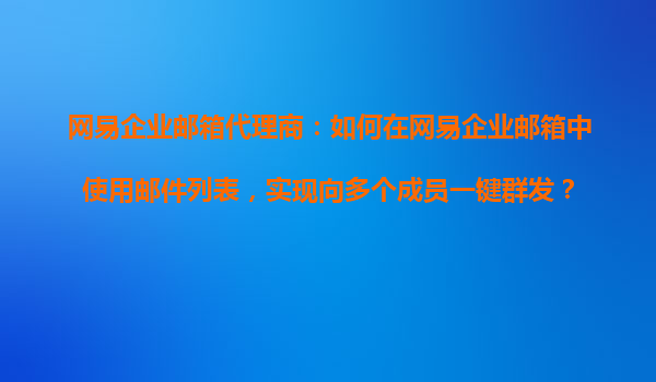 2025-10-23網(wǎng)易企業(yè)郵箱代理商:如何在網(wǎng)易企業(yè)郵箱中使用郵件列表,實現(xiàn)向多個成員一鍵群發(fā)? 一、網(wǎng)易企業(yè)郵箱的核心優(yōu)勢 網(wǎng)易企業(yè)郵箱作為國內領先的企業(yè)級郵箱服務提供商,具備以下核心優(yōu)勢: ...