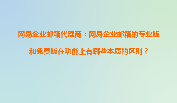 2025-10-24網(wǎng)易企業(yè)郵箱代理商:網(wǎng)易企業(yè)郵箱的專業(yè)版和免費版在功能上有哪些本質的區(qū)別? 一、網(wǎng)易企業(yè)郵箱簡介 網(wǎng)易企業(yè)郵箱是國內領先的企業(yè)郵箱服務商,依托網(wǎng)易22年的郵件運營經驗和大數(shù)據(jù)技術,為企業(yè)提供...