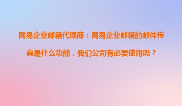 2025-10-24網(wǎng)易企業(yè)郵箱代理商:網(wǎng)易企業(yè)郵箱的郵件傳真功能解析與應用建議 一、網(wǎng)易企業(yè)郵箱郵件傳真功能簡介 網(wǎng)易企業(yè)郵箱的郵件傳真功能是一項將傳統(tǒng)傳真與電子郵件系統(tǒng)無縫結合的創(chuàng)新服務。通過該...