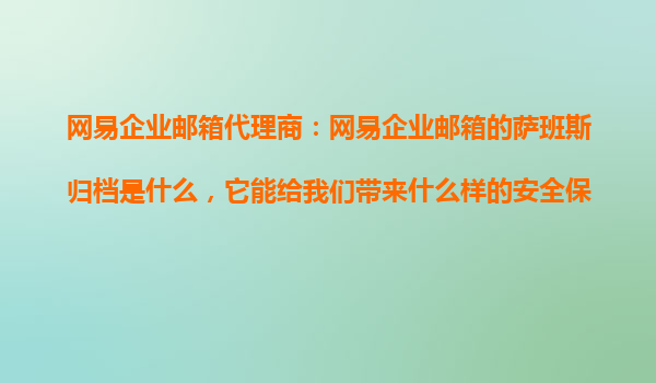 2025-10-23網(wǎng)易企業(yè)郵箱代理商:網(wǎng)易企業(yè)郵箱的薩班斯歸檔是什么,它能給我們帶來什么樣的安全保障? 一、什么是網(wǎng)易企業(yè)郵箱的薩班斯歸檔? 網(wǎng)易企業(yè)郵箱的薩班斯(Sarbanes-Oxle...