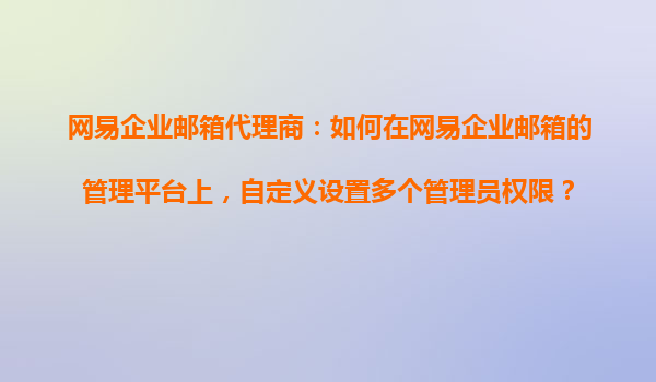 2025-10-24網(wǎng)易企業(yè)郵箱代理商指南:如何在管理平臺自定義設置多個管理員權限 一、網(wǎng)易企業(yè)郵箱的核心優(yōu)勢 作為國內領先的企業(yè)通信服務提供商,網(wǎng)易企業(yè)郵箱憑借以下優(yōu)勢成為眾多企業(yè)的首選: 超高...