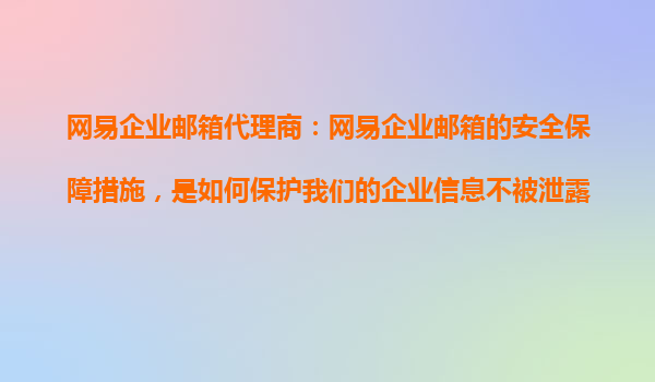 2025-10-23網(wǎng)易企業(yè)郵箱代理商:網(wǎng)易企業(yè)郵箱的安全保障措施,是如何保護我們的企業(yè)信息不被泄露的? 作者:企業(yè)郵箱專家|發(fā)布日期:2023年10月20日 一、企業(yè)信息安全的挑戰(zhàn)與網(wǎng)易企業(yè)郵箱的應對 ...
