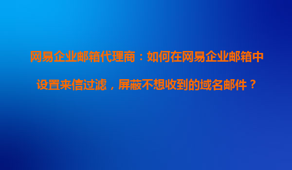 2025-10-23網(wǎng)易企業(yè)郵箱代理商指南:如何在網(wǎng)易企業(yè)郵箱中設置來信過濾,屏蔽不想收到的域名郵件? 一、網(wǎng)易企業(yè)郵箱的核心優(yōu)勢 網(wǎng)易企業(yè)郵箱作為國內領先的企業(yè)級郵件服務,憑借以下特點成為眾多企業(yè)的首選: ...