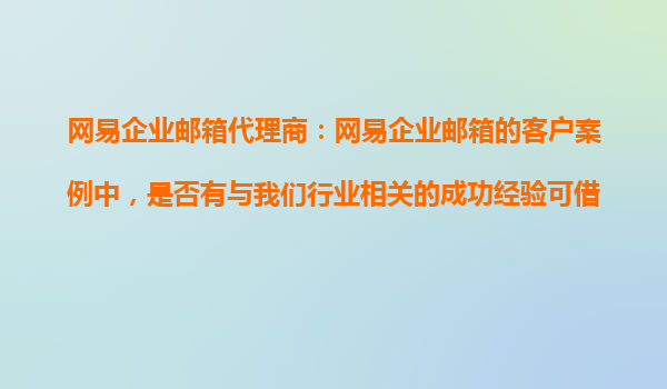 2025-10-20網(wǎng)易企業(yè)郵箱代理商:行業(yè)客戶成功經(jīng)驗(yàn)深度解析與借鑒 一、網(wǎng)易企業(yè)郵箱的核心優(yōu)勢(shì)解析 網(wǎng)易企業(yè)郵箱作為國(guó)內(nèi)領(lǐng)先的企業(yè)通信解決方案,具備以下差異化優(yōu)勢(shì): 軍工級(jí)安全防護(hù):采用SSL加密傳輸+全鏈路...