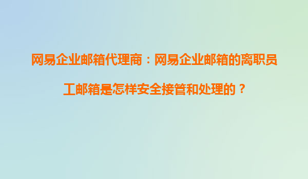 2025-10-17網(wǎng)易企業(yè)郵箱代理商:網(wǎng)易企業(yè)郵箱的離職員工郵箱是怎樣安全接管和處理的? 一、引言:離職員工郵箱管理的必要性 在當(dāng)前企業(yè)信息化管理背景下,員工郵箱不僅是溝通工具,更承載了大...