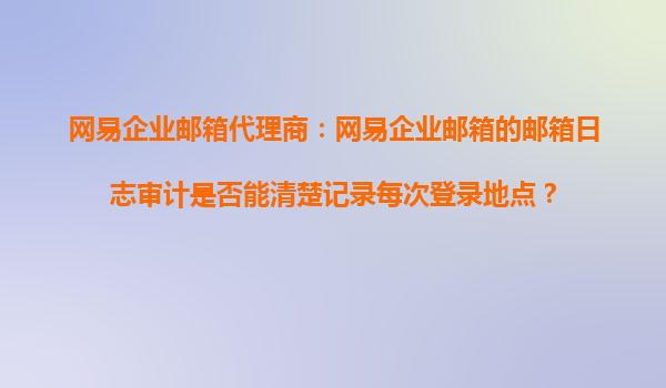 2025-10-18網(wǎng)易企業(yè)郵箱代理商:網(wǎng)易企業(yè)郵箱的郵箱日志審計(jì)是否能清楚記錄每次登錄地點(diǎn)? 在當(dāng)今數(shù)字化辦公環(huán)境中,企業(yè)郵箱的安全與管理日益受到重視。作為國(guó)內(nèi)領(lǐng)先的企業(yè)郵箱服務(wù)提供商,網(wǎng)易企業(yè)郵箱憑借其...