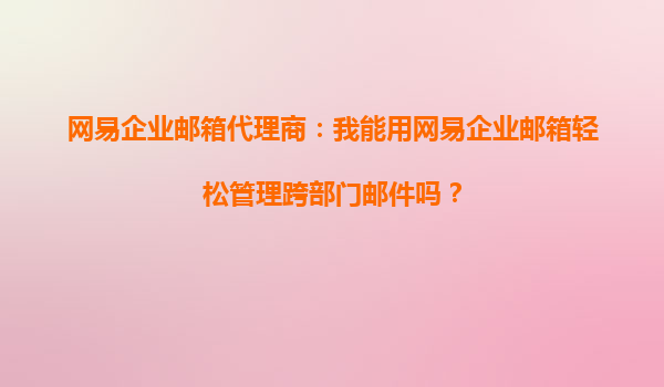 2025-10-14網(wǎng)易企業(yè)郵箱代理商:我能用網(wǎng)易企業(yè)郵箱輕松管理跨部門郵件嗎? 一、網(wǎng)易企業(yè)郵箱的核心優(yōu)勢 網(wǎng)易企業(yè)郵箱作為國內(nèi)領(lǐng)先的企業(yè)級郵件服務(wù)提供商,憑借其穩(wěn)定高效的系統(tǒng)架構(gòu)、強大的安全防護能力以...