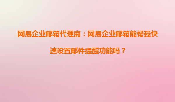 2025-10-14網(wǎng)易企業(yè)郵箱代理商:快速設(shè)置郵件提醒功能,提升企業(yè)溝通效率 一、郵件提醒功能的重要性 在現(xiàn)代企業(yè)管理中,高效的溝通和協(xié)作是提高企業(yè)運營效率的關(guān)鍵。郵件作為企業(yè)...