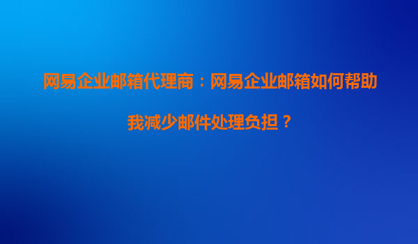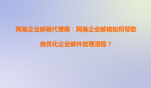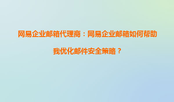 2025-10-14網(wǎng)易企業(yè)郵箱代理商:網(wǎng)易企業(yè)郵箱如何幫助我優(yōu)化企業(yè)郵件管理流程? 在當今數(shù)字化辦公環(huán)境中,高效、安全的郵件管理是企業(yè)運營的重要一環(huán)。作為國內(nèi)領(lǐng)先的企業(yè)郵箱服務(wù)提供商,網(wǎng)易企業(yè)郵箱憑借其強...