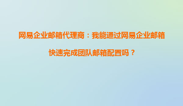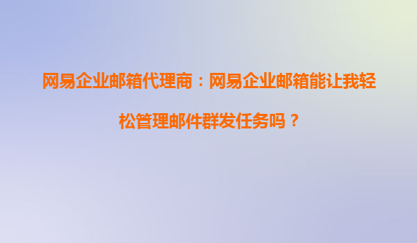 2025-10-14網(wǎng)易企業(yè)郵箱代理商:網(wǎng)易企業(yè)郵箱能讓我輕松管理郵件群發(fā)任務(wù)嗎? 一、網(wǎng)易企業(yè)郵箱代理商的核心價值 作為網(wǎng)易企業(yè)郵箱官方授權(quán)的代理商,我們的核心價值在于為企業(yè)客戶提供專業(yè)、高效的郵箱解決方案。代...