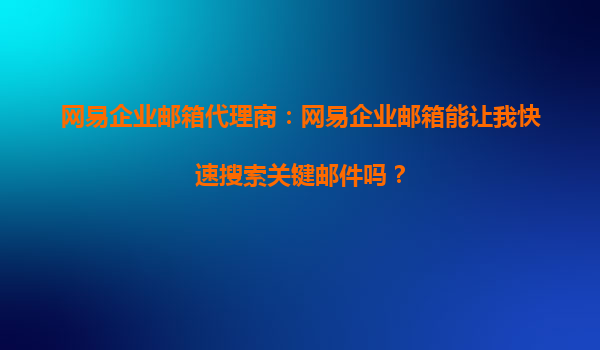 2025-10-13網(wǎng)易企業(yè)郵箱代理商:網(wǎng)易企業(yè)郵箱能讓我快速搜索關(guān)鍵郵件嗎? 在當今快節(jié)奏的商業(yè)環(huán)境中,電子郵件的數(shù)量與日俱增,如何高效地管理和搜索關(guān)鍵郵件成為企業(yè)高效運營的重要一環(huán)。作為網(wǎng)易企業(yè)郵箱的代理商,我們...