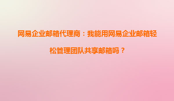 2025-10-13網(wǎng)易企業(yè)郵箱:團隊共享郵箱的高效管理解決方案 一、團隊協(xié)作的痛點與需求 在現(xiàn)代化企業(yè)運營中,團隊協(xié)作效率直接影響業(yè)務(wù)發(fā)展。許多企業(yè)會使用共享郵箱(如sales@company.com、service@company.com等)處理客...