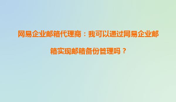 2025-10-13網(wǎng)易企業(yè)郵箱的郵箱備份管理功能 作為網(wǎng)易企業(yè)郵箱代理商,我們經(jīng)常被客戶詢問是否可以通過網(wǎng)易企業(yè)郵箱實現(xiàn)郵箱備份管理。答案是肯定的。網(wǎng)易企業(yè)郵箱不僅提供強大的郵箱備份管理功能,還能幫助企業(yè)高效管理郵件數(shù)...
