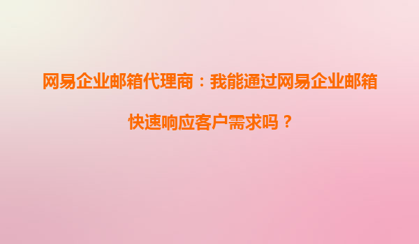 2025-10-11網(wǎng)易企業(yè)郵箱代理商:我能通過網(wǎng)易企業(yè)郵箱快速響應(yīng)客戶需求嗎? 一、網(wǎng)易企業(yè)郵箱的核心優(yōu)勢 網(wǎng)易企業(yè)郵箱作為國內(nèi)領(lǐng)先的企業(yè)級郵箱服務(wù)提供商,憑借其穩(wěn)定、安全、高效的特性,成為眾多企業(yè)的首...