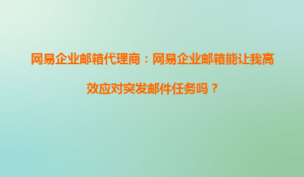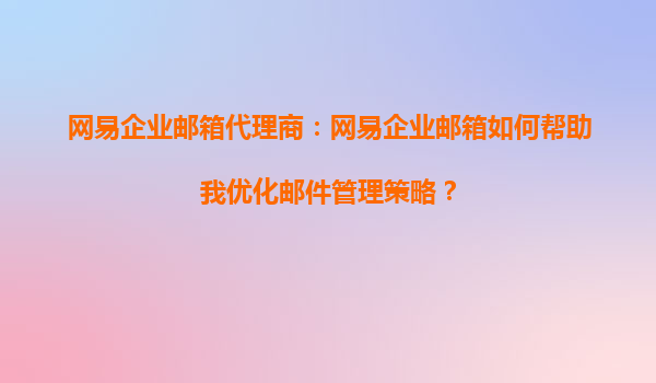 2025-10-11網(wǎng)易企業(yè)郵箱代理商:網(wǎng)易企業(yè)郵箱如何幫助我優(yōu)化郵件管理策略? 在當今數(shù)字化辦公環(huán)境中,高效的郵件管理是企業(yè)提升溝通效率、保障信息安全的關(guān)鍵。網(wǎng)易企業(yè)郵箱作為國內(nèi)領(lǐng)先的企業(yè)級郵箱服務(wù),憑借...