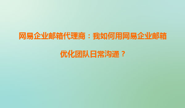 2025-10-12網(wǎng)易企業(yè)郵箱代理商:我如何用網(wǎng)易企業(yè)郵箱優(yōu)化團隊日常溝通? 在當今快節(jié)奏的商業(yè)環(huán)境中,高效的團隊溝通是企業(yè)成功的關(guān)鍵因素之一。作為網(wǎng)易企業(yè)郵箱的代理商,我深刻體會到網(wǎng)易企業(yè)郵箱在優(yōu)化團隊...