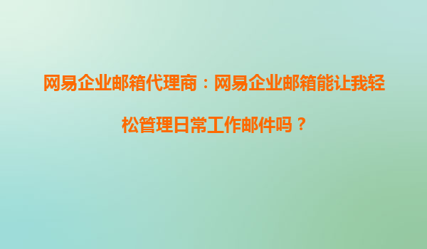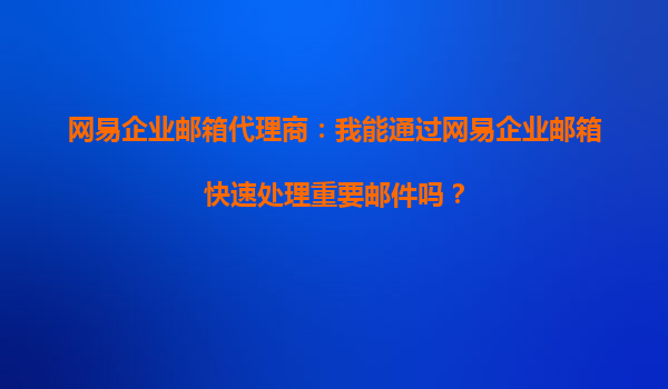 2025-10-10網(wǎng)易企業(yè)郵箱代理商:網(wǎng)易企業(yè)郵箱能幫我快速處理客戶(hù)咨詢(xún)嗎? 在當(dāng)今快節(jié)奏的商業(yè)環(huán)境中,快速響應(yīng)客戶(hù)咨詢(xún)是企業(yè)成功的關(guān)鍵因素之一。作為企業(yè)通信的核心工具,企業(yè)郵箱的效率和穩(wěn)定性直接影響客戶(hù)服務(wù)的質(zhì)量。...