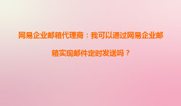 2025-10-10網(wǎng)易企業(yè)郵箱代理商:我可以通過(guò)網(wǎng)易企業(yè)郵箱實(shí)現(xiàn)郵件定時(shí)發(fā)送嗎? 在當(dāng)今快節(jié)奏的商業(yè)環(huán)境中,高效的郵件溝通是企業(yè)運(yùn)營(yíng)中不可或缺的一部分。網(wǎng)易企業(yè)郵箱作為國(guó)內(nèi)領(lǐng)先的企業(yè)郵箱服務(wù)提供商,憑借其...