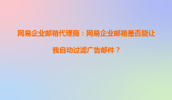 2025-09-30網(wǎng)易企業(yè)郵箱代理商:網(wǎng)易企業(yè)郵箱是否能讓我自動過濾廣告郵件? 在當(dāng)今數(shù)字化辦公環(huán)境中,企業(yè)郵箱不僅是溝通的重要工具,更是企業(yè)形象和專業(yè)度的體現(xiàn)。然而,隨著電子郵件的普及,廣告郵件、垃圾郵...