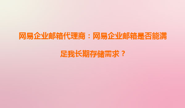 2025-09-30網(wǎng)易企業(yè)郵箱代理商:網(wǎng)易企業(yè)郵箱是否能滿足我長期存儲需求? 在當(dāng)今數(shù)字化辦公環(huán)境中,企業(yè)郵箱不僅是溝通工具,更是企業(yè)數(shù)據(jù)資產(chǎn)的重要載體。許多企業(yè)在選擇郵箱服務(wù)時,往往會關(guān)注一個核心問題:能否滿足長...