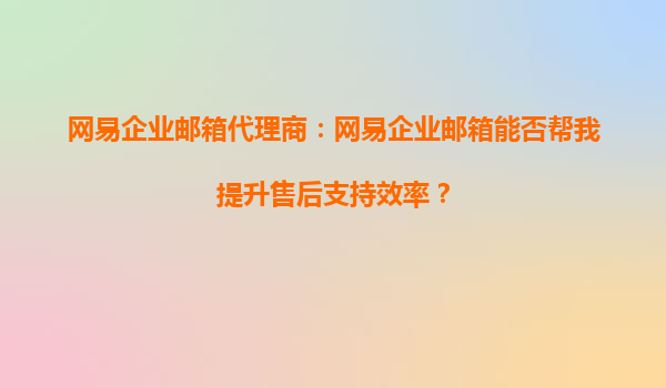 2025-09-30網(wǎng)易企業(yè)郵箱代理商:網(wǎng)易企業(yè)郵箱能否幫我提升售后支持效率? 一、企業(yè)售后支持的痛點與需求 在數(shù)字化時代,高效的售后支持已成為企業(yè)競爭力的核心要素之一。然而,許多企業(yè)面臨以下挑...