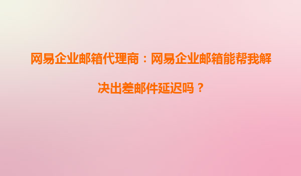 2025-09-30網(wǎng)易企業(yè)郵箱代理商:網(wǎng)易企業(yè)郵箱能幫我解決出差郵件延遲嗎? 在現(xiàn)代商務(wù)環(huán)境中,郵件溝通是企業(yè)運營的核心環(huán)節(jié)之一。然而,許多企業(yè)在員工出差時常常遇到郵件延遲的問題,這不僅影響了工作效率,還...