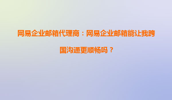 2025-09-24網(wǎng)易企業(yè)郵箱代理商:網(wǎng)易企業(yè)郵箱能讓我跨國(guó)溝通更順暢嗎? 一、跨國(guó)溝通的挑戰(zhàn)與需求 在全球化的商業(yè)環(huán)境中,跨國(guó)溝通已成為企業(yè)日常運(yùn)營(yíng)的重要組成部分。然而,跨國(guó)溝通往往面臨諸多挑戰(zhàn),例如...