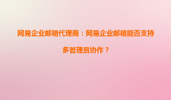 2025-09-22網(wǎng)易企業(yè)郵箱代理商:網(wǎng)易企業(yè)郵箱能否支持多管理員協(xié)作? 在企業(yè)管理中,高效的團隊協(xié)作是企業(yè)郵箱系統(tǒng)的重要考量因素之一。網(wǎng)易企業(yè)郵箱作為國內(nèi)知名企業(yè)級電子郵件解決方案提供商,其在功能設(shè)計上充分考慮了企...