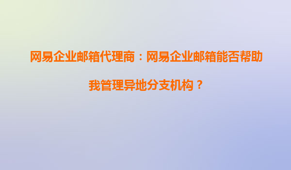 2025-09-22網(wǎng)易企業(yè)郵箱代理商:網(wǎng)易企業(yè)郵箱能否幫助您管理異地分支機構(gòu)? 引言 隨著企業(yè)業(yè)務(wù)范圍的擴大,越來越多的公司在全國乃至全球范圍內(nèi)設(shè)立分支機構(gòu)。如何高效地...