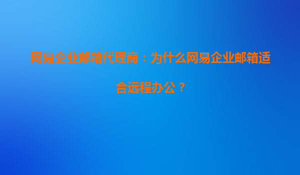 2025-09-21網(wǎng)易企業(yè)郵箱代理商解析:為什么網(wǎng)易企業(yè)郵箱適合遠程辦公? 一、引言:遠程辦公的挑戰(zhàn)與需求 隨著數(shù)字化辦公的普及,遠程辦公已成為企業(yè)常態(tài)。然而,高效協(xié)同、數(shù)據(jù)安全和便捷管理仍是...