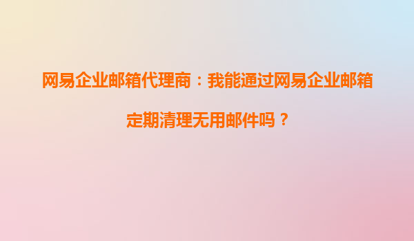 2025-09-22網(wǎng)易企業(yè)郵箱代理商:我能通過網(wǎng)易企業(yè)郵箱定期清理無用郵件嗎? 一、網(wǎng)易企業(yè)郵箱的自動化管理優(yōu)勢 作為國內(nèi)領(lǐng)先的企業(yè)郵箱服務(wù)提供商,網(wǎng)易企業(yè)郵箱提供了強大的郵件管理功能。其智能化系統(tǒng)支持自動歸檔...