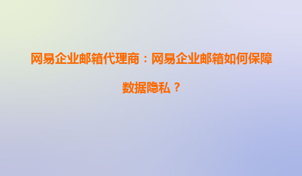 4008-020-360 網(wǎng)易企業(yè)郵箱代理商:網(wǎng)易企業(yè)郵箱如何保障數(shù)據(jù)隱私? 在當(dāng)今數(shù)字化時代,企業(yè)郵箱已成為企業(yè)日常溝通和數(shù)據(jù)存儲的核心工具之一。數(shù)據(jù)隱私保護不僅關(guān)乎企業(yè)的信息安全,更直接影響客戶信任與合規(guī)性。作為國...