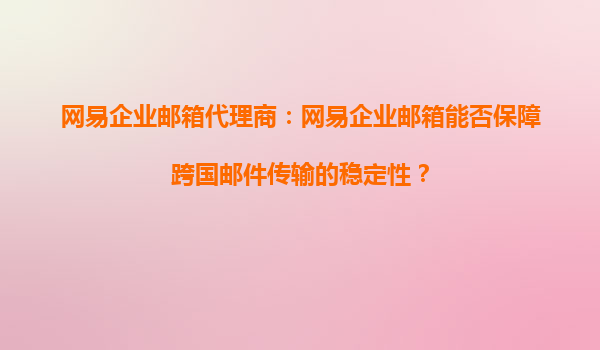 2025-09-19網(wǎng)易企業(yè)郵箱代理商:網(wǎng)易企業(yè)郵箱能否保障跨國(guó)郵件傳輸?shù)姆€(wěn)定性? 在全球化的商業(yè)環(huán)境中,跨國(guó)郵件通信已成為企業(yè)日常運(yùn)營(yíng)的重要組成部分。作為網(wǎng)易企業(yè)郵箱的代理商,我們經(jīng)常被客戶問到一個(gè)核心問...