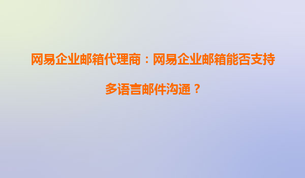 4008-020-360 網(wǎng)易企業(yè)郵箱代理商:網(wǎng)易企業(yè)郵箱能否支持多語(yǔ)言郵件溝通? 在全球化商業(yè)環(huán)境下,企業(yè)需要與不同國(guó)家和地區(qū)的客戶、合作伙伴進(jìn)行高效溝通。作為國(guó)內(nèi)領(lǐng)先的企業(yè)郵箱服務(wù)提供商,網(wǎng)易企業(yè)郵箱憑借其強(qiáng)大的多語(yǔ)...