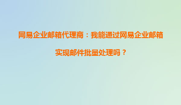 2025-09-16網(wǎng)易企業(yè)郵箱代理商:我該如何通過網(wǎng)易企業(yè)郵箱提高團隊郵件處理效率? 作為現(xiàn)代企業(yè)溝通的重要工具,企業(yè)郵箱的效率和穩(wěn)定性直接影響到團隊的工作效率。作為網(wǎng)易企業(yè)郵箱代理商,深知網(wǎng)易企業(yè)郵箱的強大功能如...
