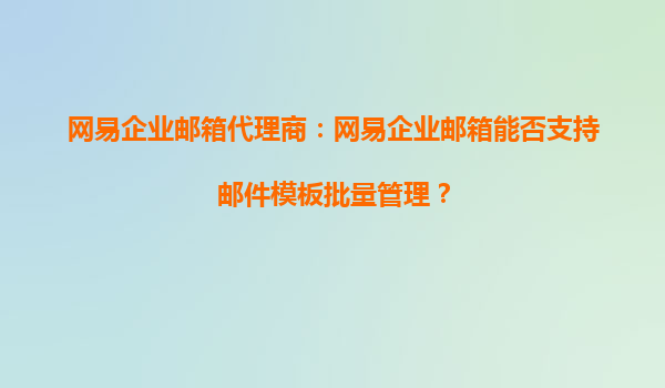 2025-09-16網(wǎng)易企業(yè)郵箱代理商解析:網(wǎng)易企業(yè)郵箱的郵件模板批量管理功能及優(yōu)勢 在當今快節(jié)奏的商業(yè)環(huán)境中,高效、便捷的企業(yè)郵箱系統(tǒng)對于提升企業(yè)溝通效率至關(guān)重要。作為國內(nèi)領(lǐng)先的企業(yè)郵箱服務(wù)提供商,網(wǎng)易企業(yè)郵箱憑...