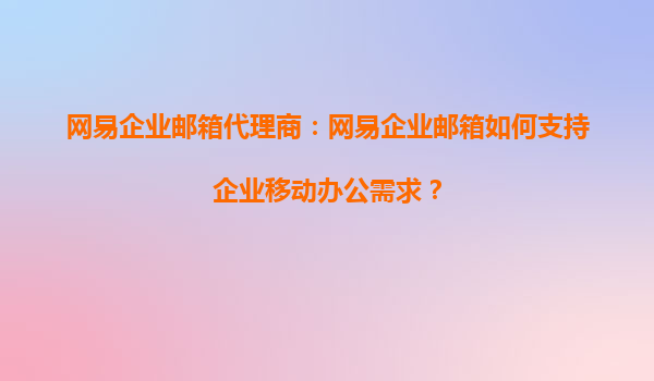 2025-09-16網(wǎng)易企業(yè)郵箱代理商:網(wǎng)易企業(yè)郵箱如何支持企業(yè)移動辦公需求? 一、移動辦公時代的企業(yè)需求 隨著數(shù)字化辦公的普及,企業(yè)對移動辦公的需求日益增長。員工需要隨時隨地處...