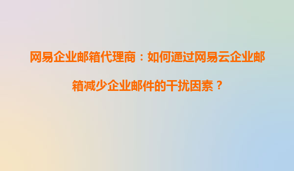 2025-09-16網(wǎng)易企業(yè)郵箱代理商:如何通過網(wǎng)易云企業(yè)郵箱減少企業(yè)郵件的干擾因素? 在現(xiàn)代企業(yè)中,郵件是重要的溝通工具之一,但同時也可能成為干擾工作效率的因素。網(wǎng)易云企業(yè)郵箱作為一款高效的企業(yè)郵箱解決方案,憑借其豐富...