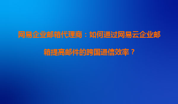 2025-09-16網(wǎng)易企業(yè)郵箱代理商:如何通過網(wǎng)易云企業(yè)郵箱提高郵件的跨國通信效率? 一、跨國郵件通信的挑戰(zhàn) 隨著全球化進程的加速,越來越多的企業(yè)需要與海外客戶、合作伙伴保持高效溝通。然而,跨國郵件通信常常面臨以...
