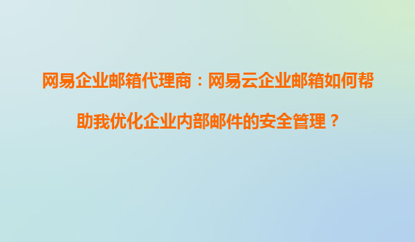 2025-09-16網(wǎng)易企業(yè)郵箱代理商:網(wǎng)易云企業(yè)郵箱如何幫助我優(yōu)化企業(yè)內(nèi)部郵件的安全管理? 一、引言:企業(yè)內(nèi)部郵件安全的重要性 在數(shù)字化辦公時代,企業(yè)郵箱不僅是溝通工具,更是承載商業(yè)機密、客戶數(shù)據(jù)和內(nèi)部決策的核...