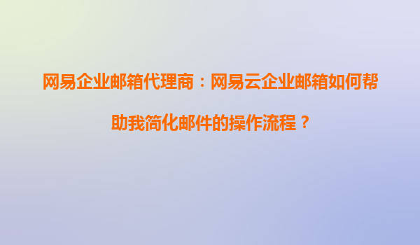 2025-09-16網(wǎng)易企業(yè)郵箱代理商:網(wǎng)易云企業(yè)郵箱如何幫助您簡化郵件操作流程 引言 在快節(jié)奏的商業(yè)環(huán)境中,高效的溝通是企業(yè)成功的關(guān)鍵。電子郵件作為企業(yè)日常溝通的重要工...