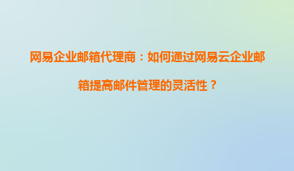2025-09-16網(wǎng)易企業(yè)郵箱代理商:如何通過網(wǎng)易云企業(yè)郵箱提高工作郵件的可管理性? 在現(xiàn)代企業(yè)中,高效的郵件管理是提升工作效率的關(guān)鍵。作為網(wǎng)易企業(yè)郵箱代理商,我們深知網(wǎng)易云企業(yè)郵箱在郵件管理方面的優(yōu)勢。以下將從多個角...