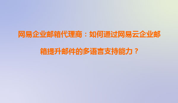 2025-09-16網(wǎng)易企業(yè)郵箱代理商:如何通過網(wǎng)易云企業(yè)郵箱提升郵件的多語言支持能力? 一、網(wǎng)易企業(yè)郵箱的多語言支持優(yōu)勢 隨著企業(yè)全球化的發(fā)展,跨語言溝通成為日常業(yè)務(wù)的重要組成部分。作為國內(nèi)領(lǐng)先的企業(yè)郵...