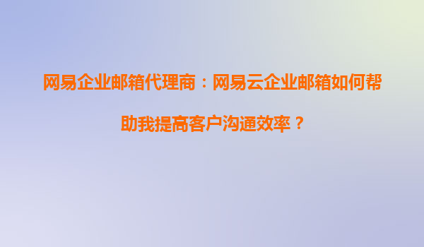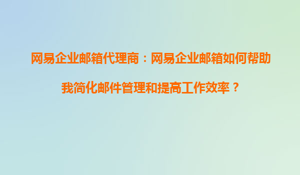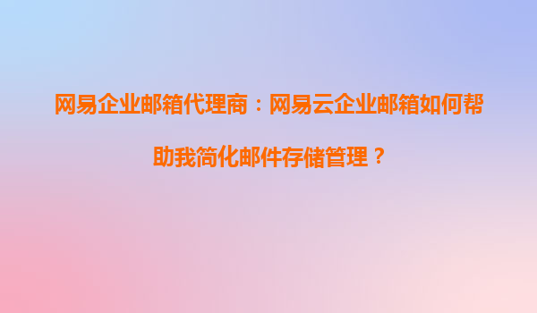 2025-09-03網(wǎng)易企業(yè)郵箱代理商:網(wǎng)易企業(yè)郵箱如何幫助我簡化郵件管理和提高工作效率? 在當(dāng)今快節(jié)奏的商業(yè)環(huán)境中,高效的郵件管理對于企業(yè)運(yùn)營至關(guān)重要。作為國內(nèi)領(lǐng)先的企業(yè)郵箱服務(wù)提供商,網(wǎng)易企業(yè)郵箱憑借其穩(wěn)定、安全、...