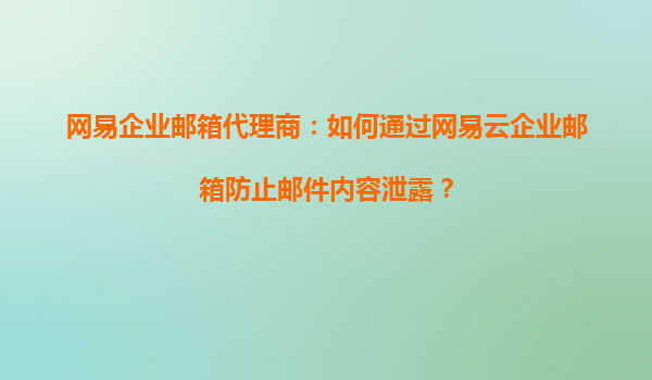 2025-09-04網(wǎng)易企業(yè)郵箱代理商:如何通過網(wǎng)易云企業(yè)郵箱防止郵件內(nèi)容泄露? 一、引言 在數(shù)字化時(shí)代,企業(yè)郵箱作為重要的商務(wù)溝通工具,承載著大量敏感信息。郵件內(nèi)容一旦泄露,可能給企業(yè)帶來巨大的經(jīng)濟(jì)損失和聲譽(yù)損害...