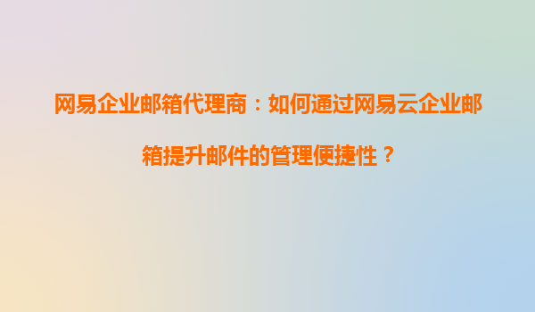 2025-09-04網(wǎng)易企業(yè)郵箱代理商:如何通過網(wǎng)易云企業(yè)郵箱提升郵件的管理便捷性? 隨著數(shù)字化辦公的快速發(fā)展,企業(yè)郵箱作為內(nèi)部溝通和業(yè)務(wù)往來的重要工具,其管理便捷性直接影響到企業(yè)的工作效率。作為國內(nèi)領(lǐng)先的企業(yè)郵箱服務(wù)...