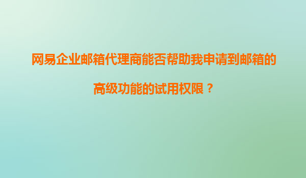 2025-11-11網(wǎng)易企業(yè)郵箱代理商能否幫助我申請到郵箱的高級功能試用權(quán)限? 在數(shù)字化辦公時代,企業(yè)郵箱已成為高效溝通與協(xié)作的核心工具之一。作為國內(nèi)領(lǐng)先的企業(yè)郵箱服務提供商,網(wǎng)易企業(yè)郵箱憑借其穩(wěn)定性、安全性及豐...