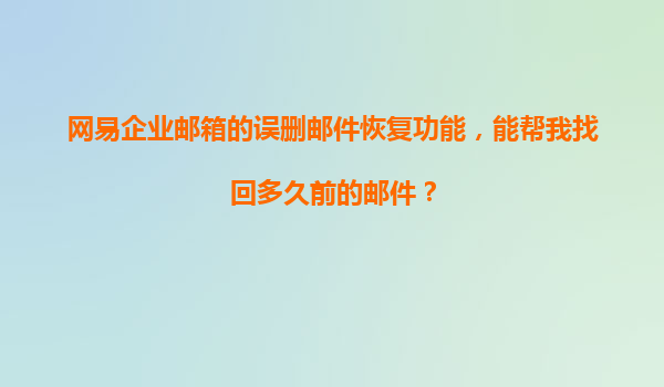 2025-11-11網(wǎng)易企業(yè)郵箱誤刪郵件恢復功能詳解:找回期限與代理服務優(yōu)勢 一、網(wǎng)易企業(yè)郵箱的誤刪郵件恢復能力 網(wǎng)易企業(yè)郵箱作為國內(nèi)領(lǐng)先的企業(yè)級郵件服務,針對用戶誤刪郵...