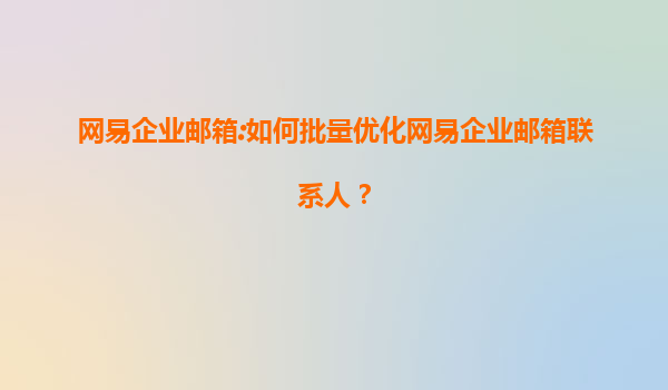 2025-08-16網(wǎng)易企業(yè)郵箱:聯(lián)系人批量優(yōu)化的高效解決方案 在日常工作中,企業(yè)郵箱聯(lián)系人的管理往往成為影響效率的關(guān)鍵因素。網(wǎng)易企業(yè)郵箱憑借其強(qiáng)大的功能與人性化設(shè)計(jì),為用戶提供了完善的批量優(yōu)化聯(lián)系人方案,幫助企業(yè)實(shí)現(xiàn)...